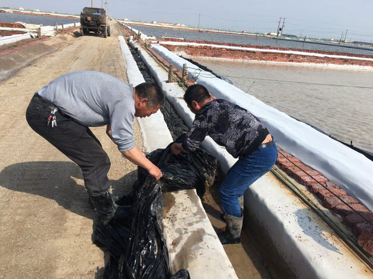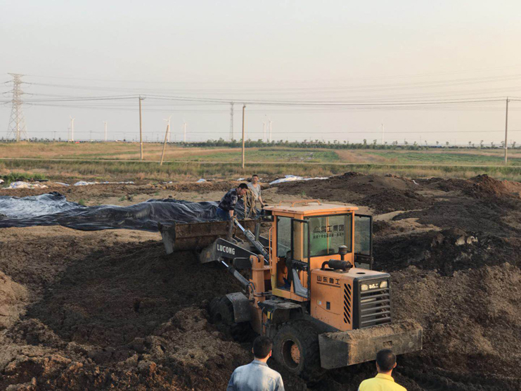 炅威實業全員參與,通過協調日曬制鹽公司,運輸一塊舊塑布至現場,采取覆蓋的方式,將固液分離出的干糞氣體有效遮蓋,從而達到排放標準。近5個小時的工作受到北歐農莊上下一致好評。(炅威實業 張寶同)